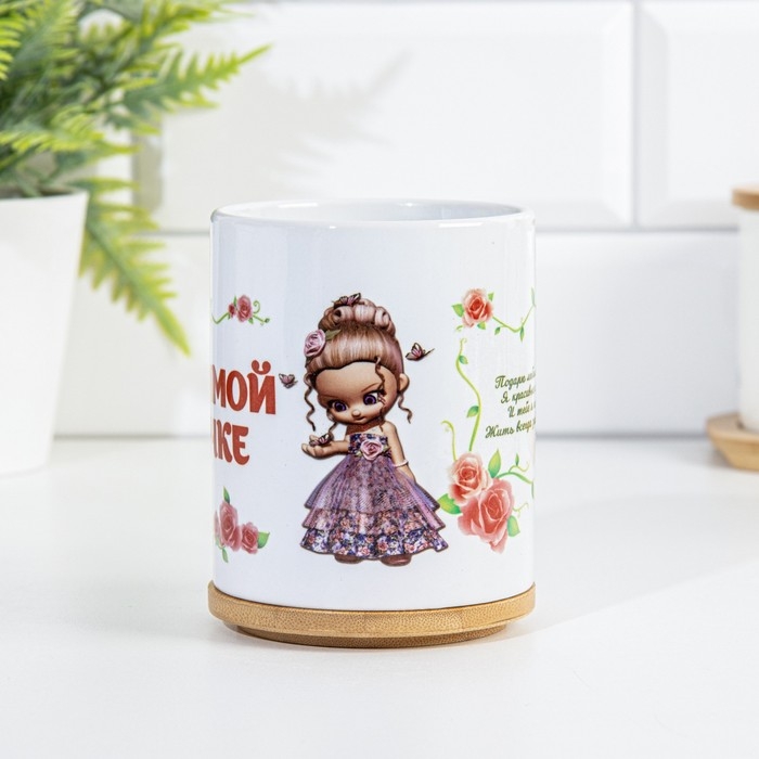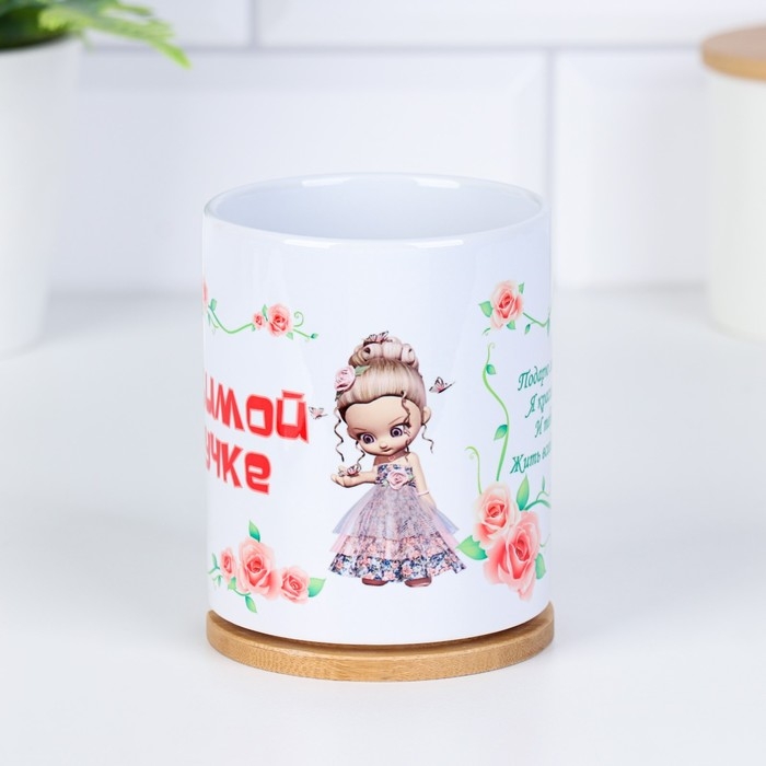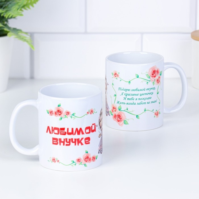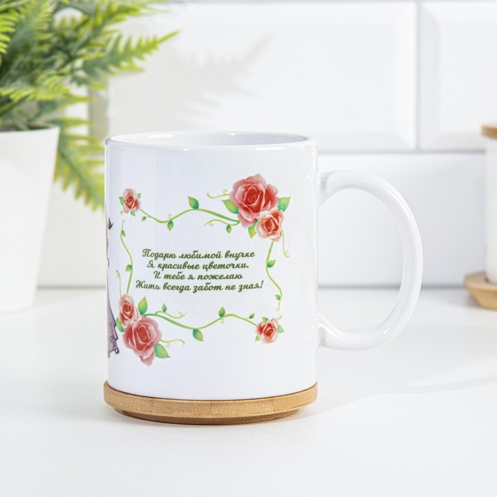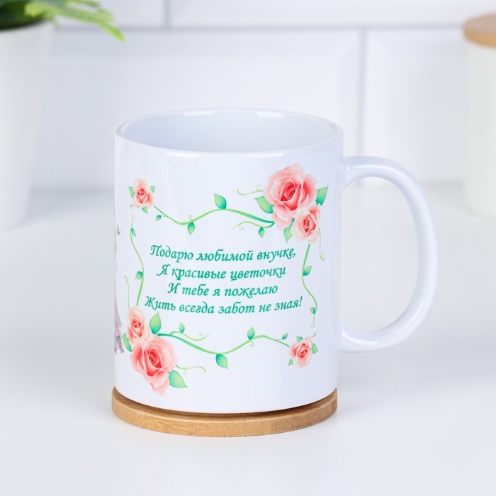 Кружка чайная керамическая "Любимой внучке" цветочки с куклой