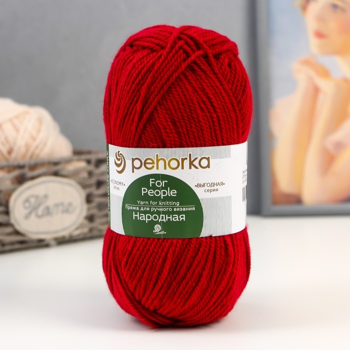 Пряжа "Народная" 30% шерсть, 70% акрил объёмный 220м/100гр (272-Вишня)
