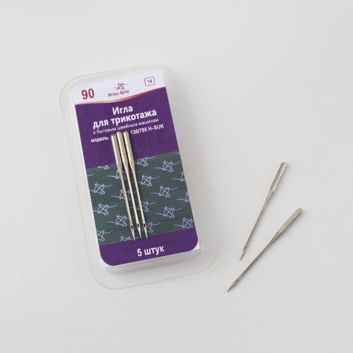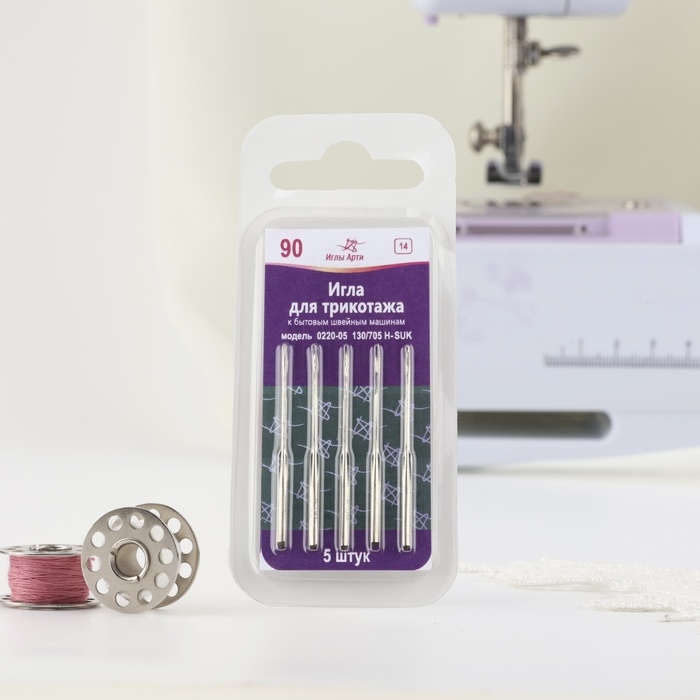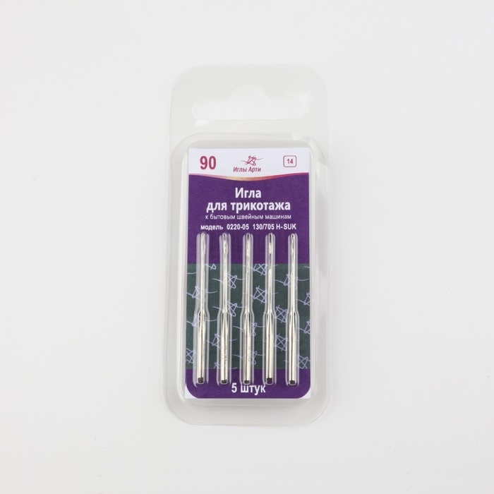 Иглы для бытовых швейных машин, для трикотажа, №90, 5 шт