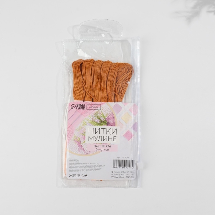 Набор ниток мулине №976, 8 ± 1 м, 6 шт, цвет золотисто-коричневый