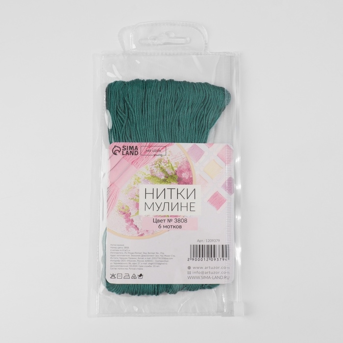 Набор ниток мулине №3808, 8 ± 1 м, 6 шт, цвет тёмно-бирюзовый