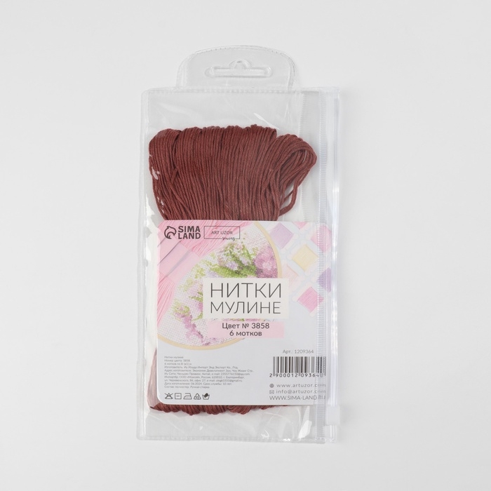 Набор ниток мулине №3858, 8 ± 1 м, 6 шт, цвет бронзовый