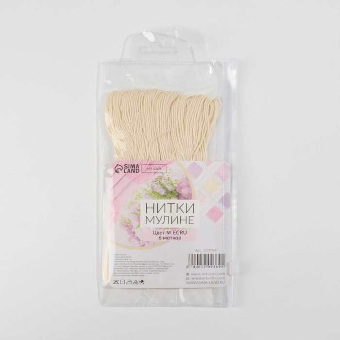 Набор ниток мулине №ECRU, 8 ± 1 м, 6 шт, цвет экрю