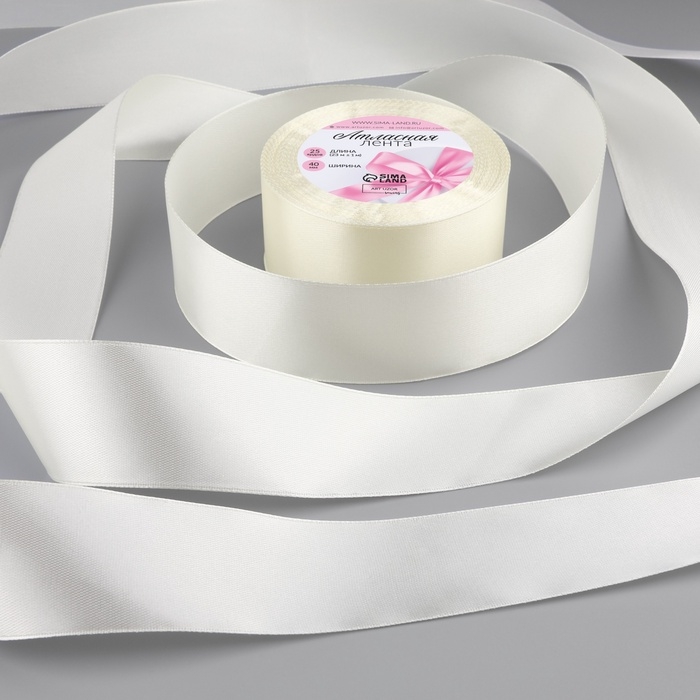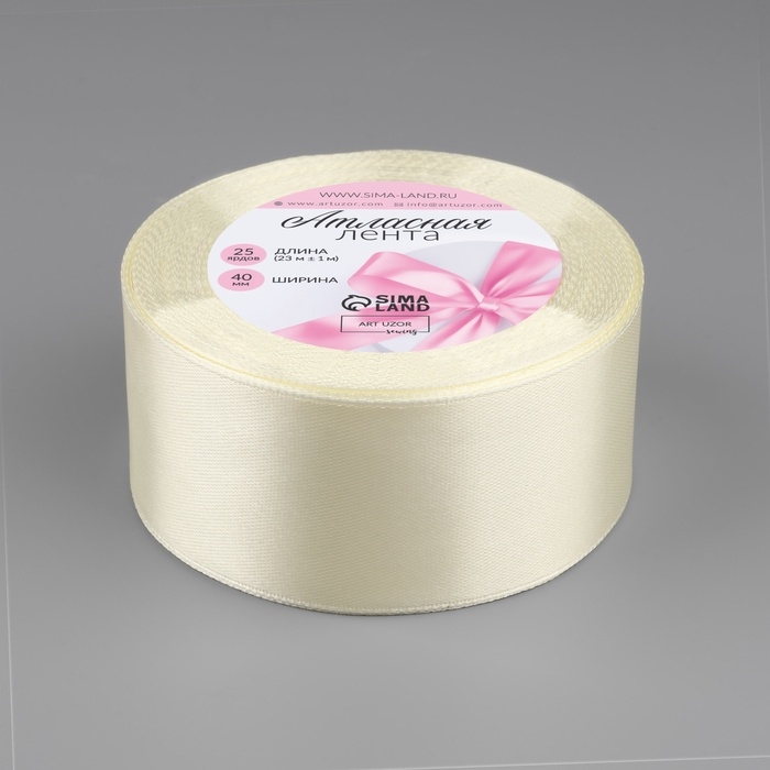 Лента атласная, 40 мм × 23 ± 1 м, цвет сливочный №02