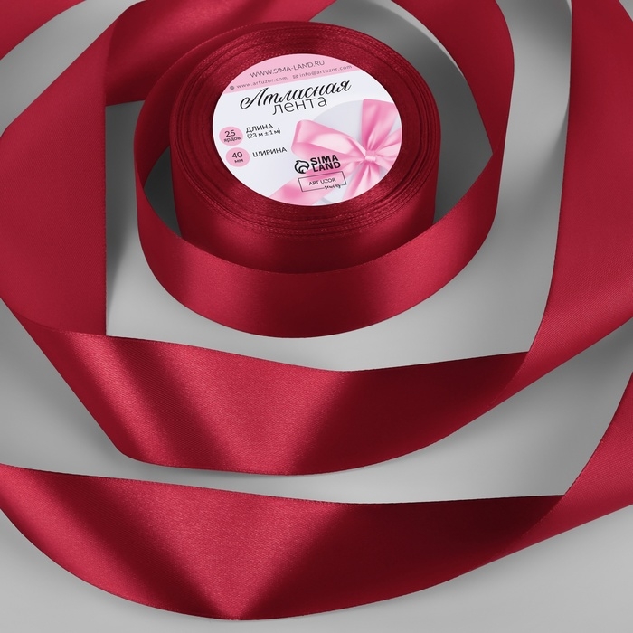 Лента атласная, 40 мм × 23 ± 1 м, цвет глубокий красный №33