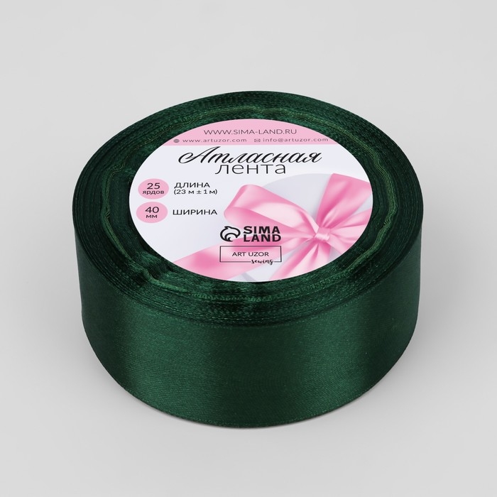 Лента атласная, 40 мм × 23 ± 1 м, цвет тёмно-зелёный №128