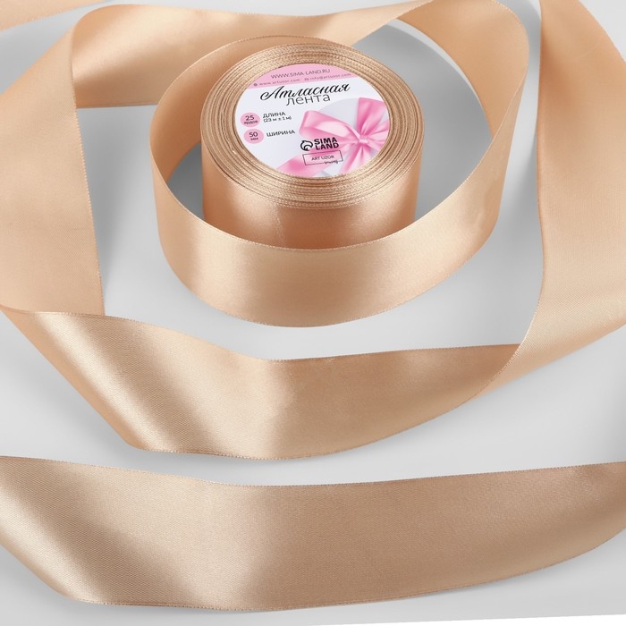 Лента атласная, 50 мм × 23 ± 1 м, цвет бежевый №267