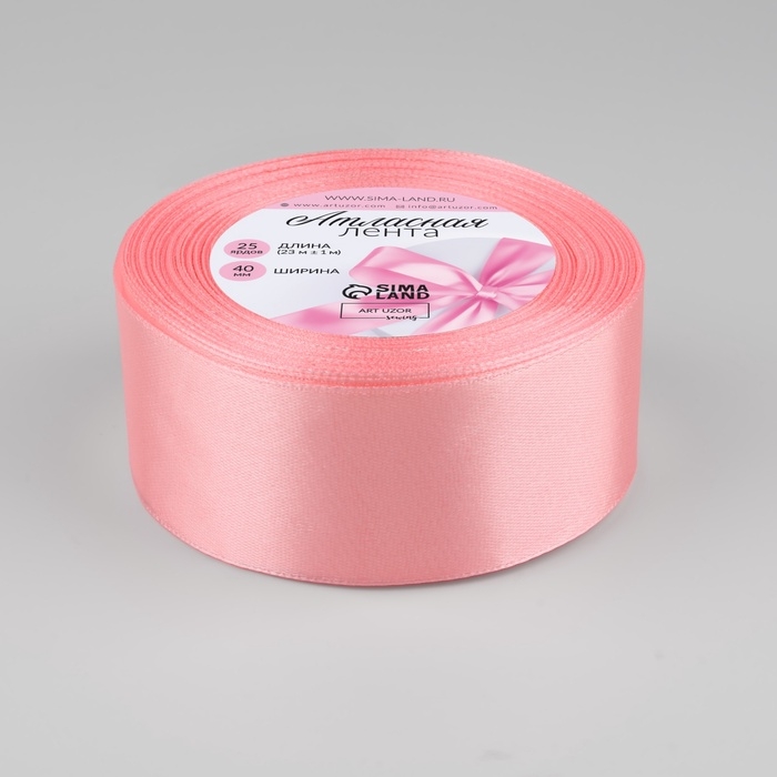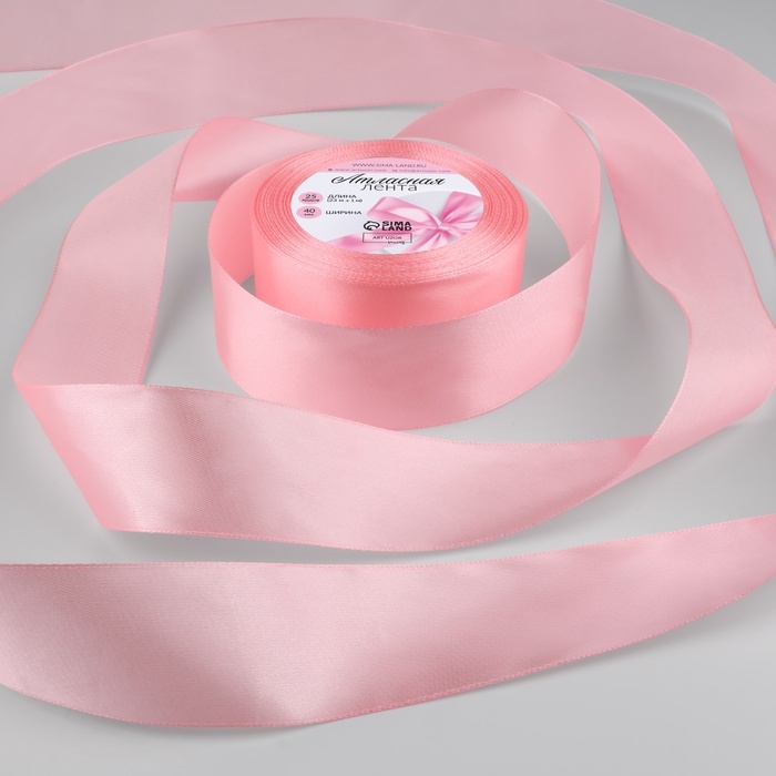Лента атласная, 40 мм × 23 ± 1 м, цвет розовый №04