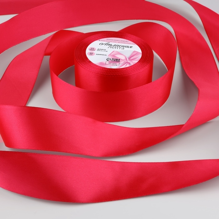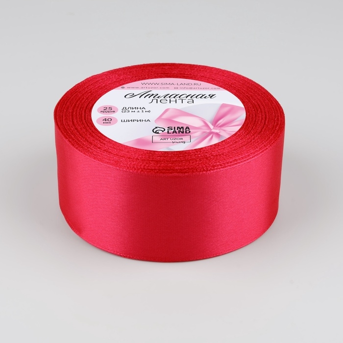 Лента атласная, 40 мм × 23 ± 1 м, цвет ярко-малиновый №28