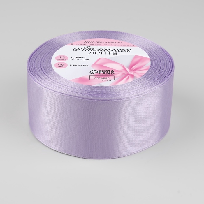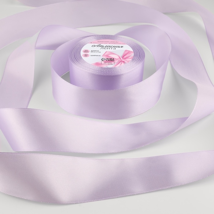Лента атласная, 40 мм × 23 ± 1 м, цвет нежно-сиреневый №44