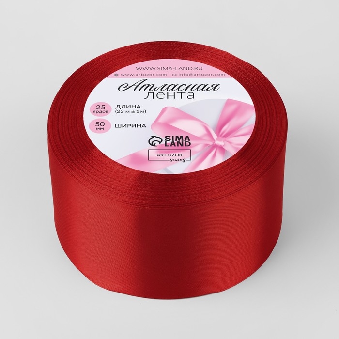 Лента атласная, 50 мм × 23 ± 1 м, цвет красный №26