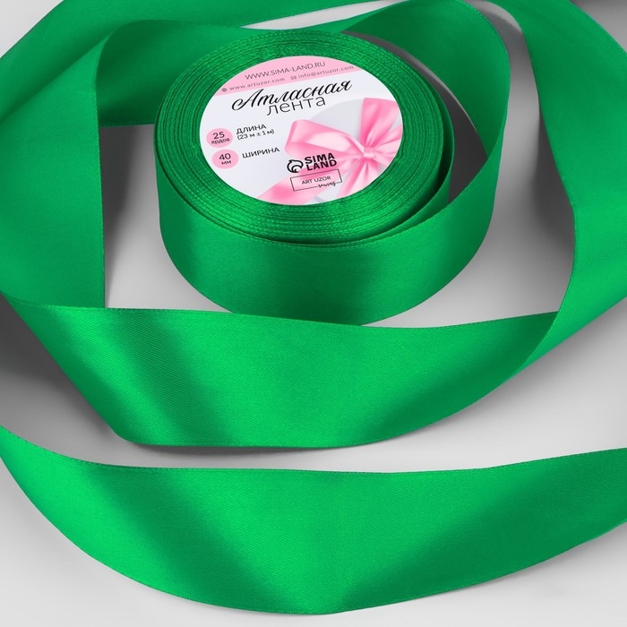 Лента атласная, 40 мм × 23 ± 1 м, цвет зелёный №19