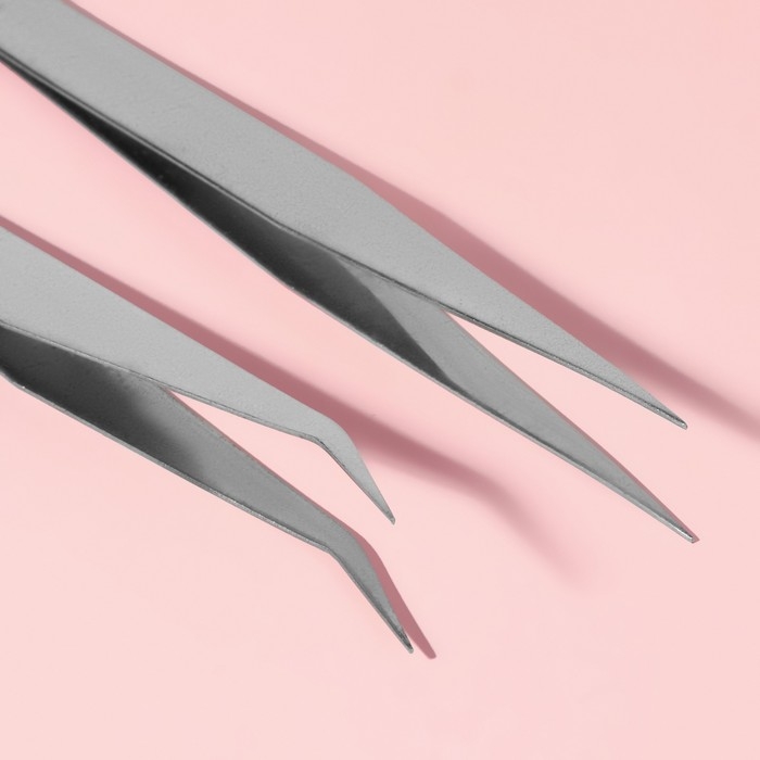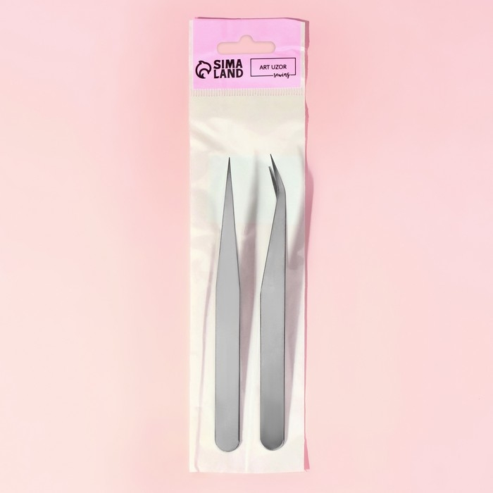 Набор пинцетов для рукоделия, прямой и изогнутый, 12, 5 / 13 см, 2 шт, цвет серебряный