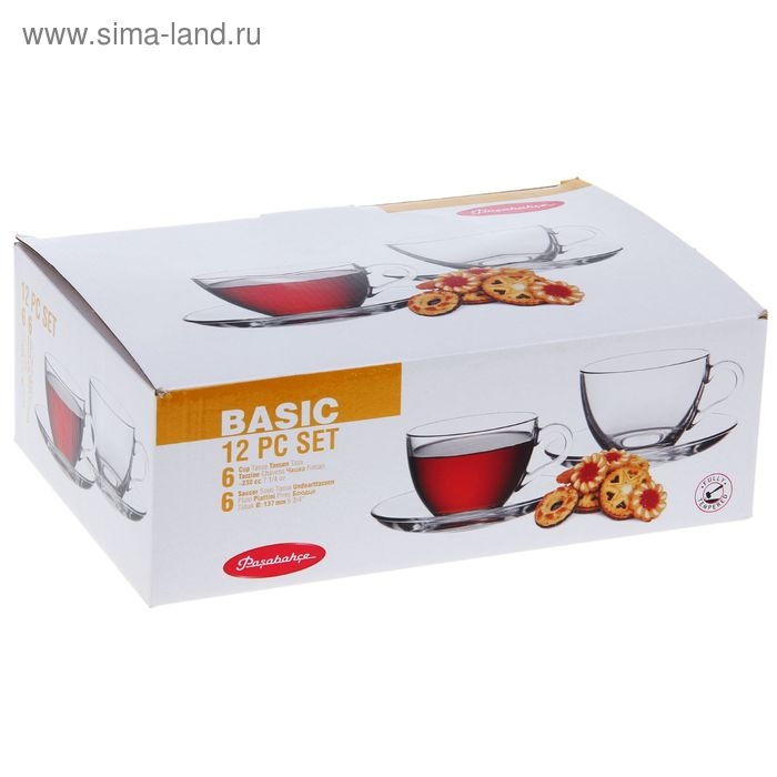 Набор чайный стеклянный Basic, 12 предметов: 6 чашек 215 мл, 6 блюдец d=13,7 см