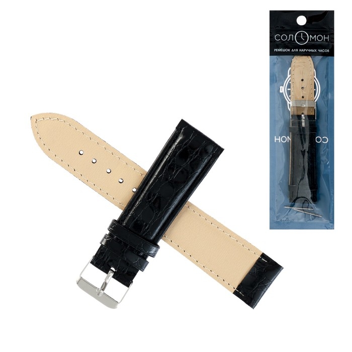 Ремешок для часов "Соломон", 22 мм, экокожа, l-20 см, черный,