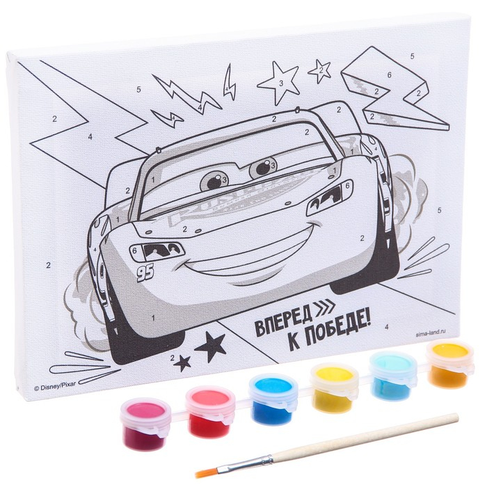 Картина по номерам для детей "Молния Маккуин" 21х15 см, Тачки понравится и детям, и взрослым.