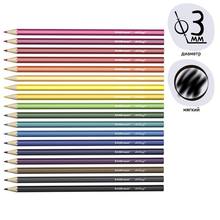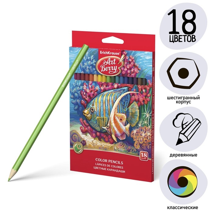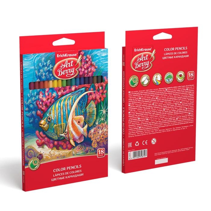 Карандаши 18 цветов ErichKrause ArtBerry премиум, дерево, шестигранные, яркий и мягкий грифель 3.0 мм, картонная упаковка, европодвес