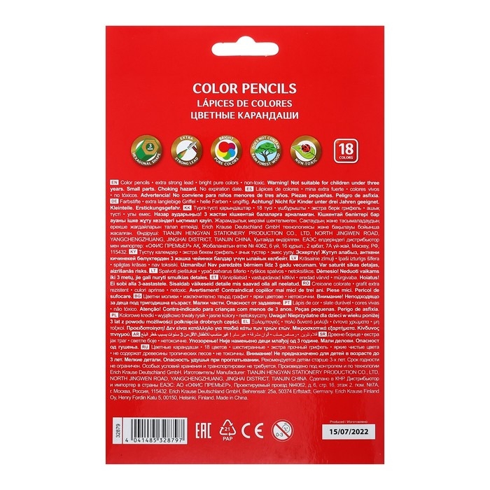 Классические шестигранные цветные карандаши из отборной древесины с ярким грифелем. Специальная пропитка древесины и сплошная проклейка грифеля обеспечивают высокую ударопрочность. Мягкая древесина и идеальная центровка грифеля гарантируют легкую заточку с экономным расходом карандаша. Грифель диаметром 3 мм не царапает бумагу и не крошится при рисовании. Европейский сертификат качества (СЕ) гарантирует отсутствие в составе токсичных веществ.