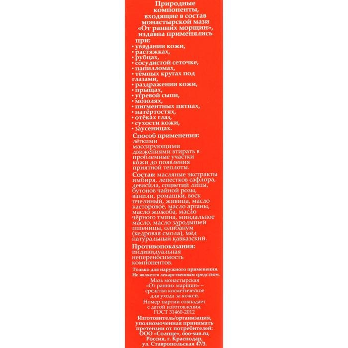 Мазь «Монастырская» от ранних морщин, 30 мл