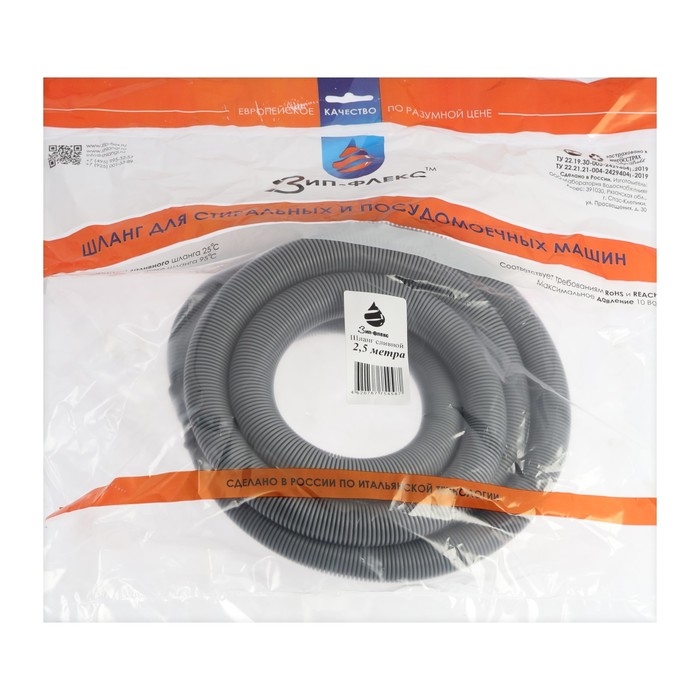 Сливной шланг для стиральный машины "Зип-флекс", индивидуальная упаковка, 2.5 м