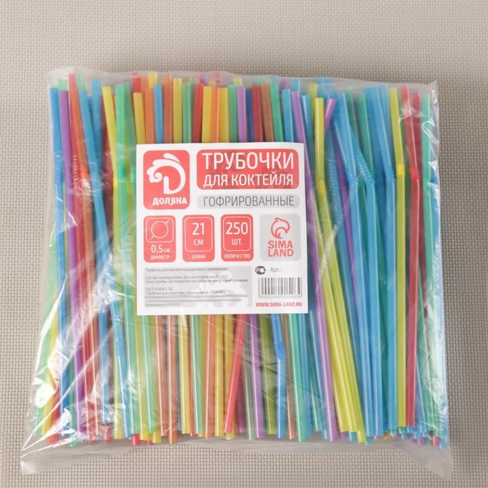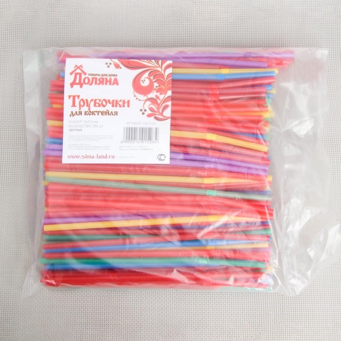 Трубочки одноразовые для напитков Доляна, 21 см, d=5 мм, 250 шт, цвет микс