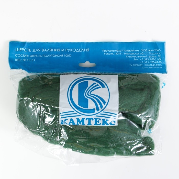 Шерсть для валяния 100% полутонкая шерсть 50 гр (110, зеленый)