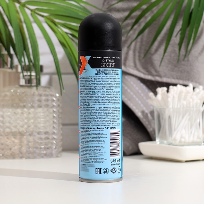Описание: дезодорант-антиперспирант спрей для тела мужской X Style «Sport», 145 мл. Стойкая формула обеспечивает надежную защиту появления неприятного запаха. Дарит вашей коже ощущение бодрости на протяжении всего дняя. Придает ощущение комфорта. Абсолютная уверенность каждый день! Состав: Isobutane/Propane/Butane, Alcohol Denat. (27,73% vol. ), Isopropyl/Myristate, Parfum, Ethylhexylglycerin (and) Octenidine HCL, Dimethicone, Bisabolol.