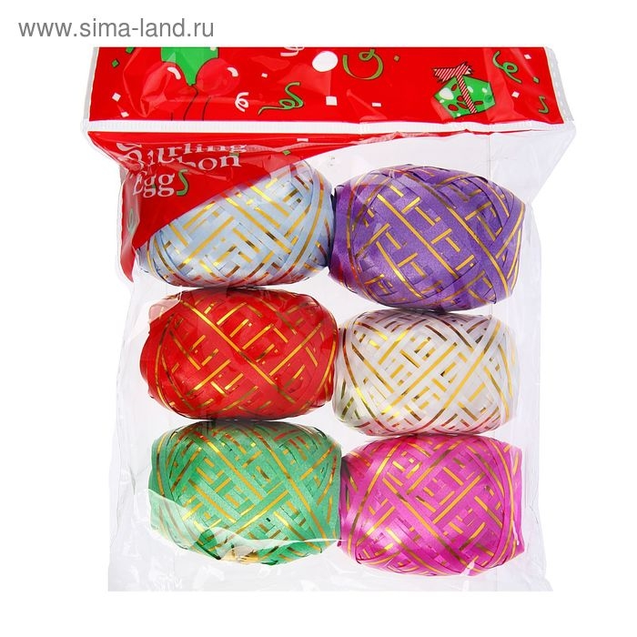 Лента упаковочная глянцевая, ассорти 0,5 см х 3 м (набор 6 цветов.)