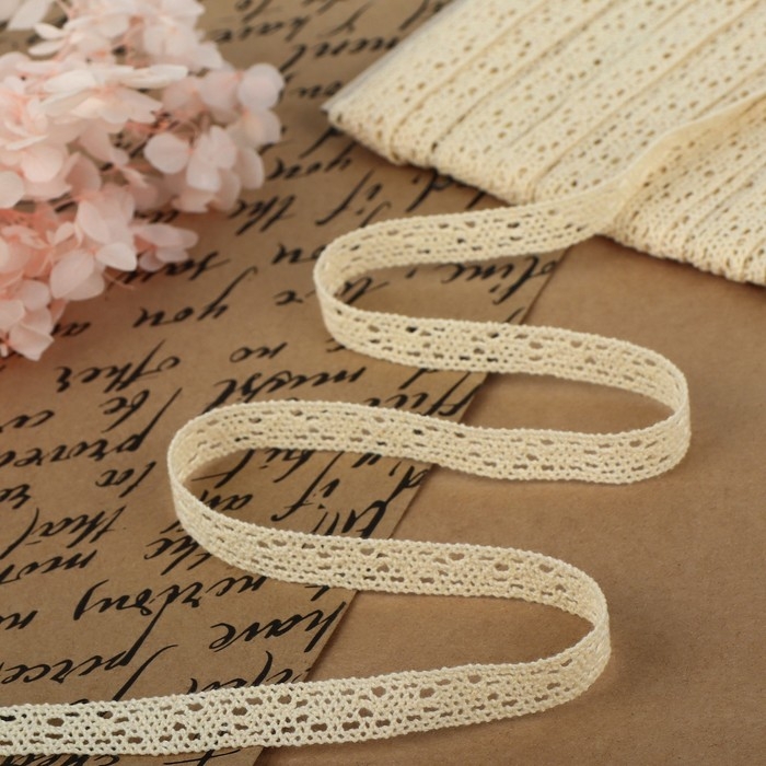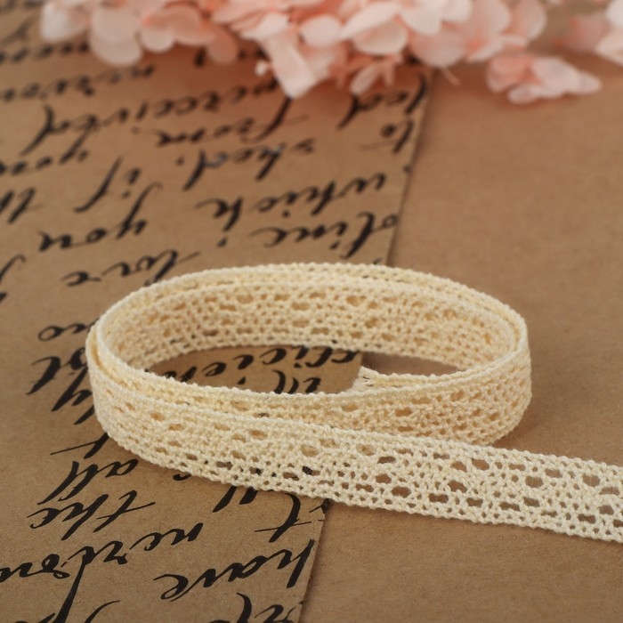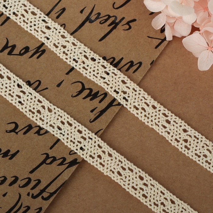 Кружево вязаное, 10 мм × 15 ± 1 м, цвет бежевый
