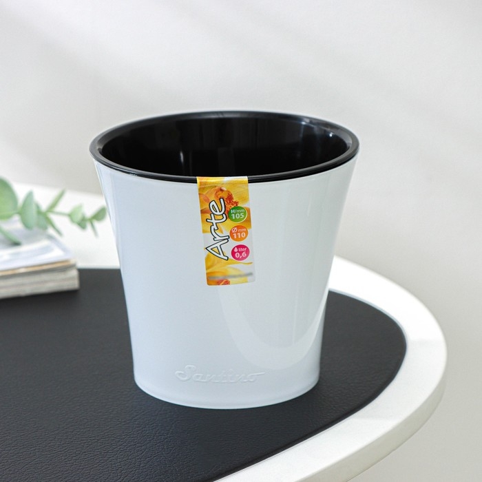 Кашпо для цветов со вставкой «Арте», 600 мл, бело-чёрное