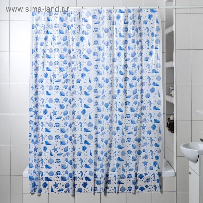 Штора для ванной «Ракушки», 180×180 см, цвет белый
