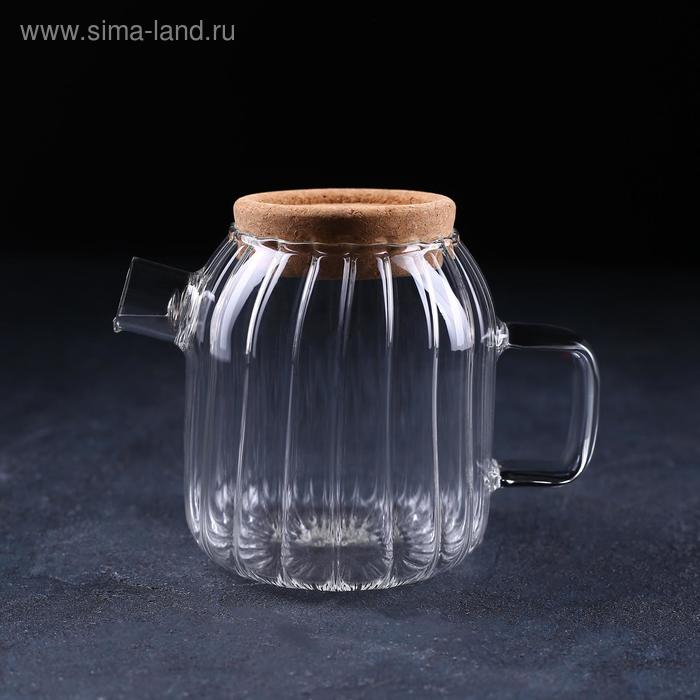 Кувшин для воды стеклянный с пробковой крышкой «Эко», 600 мл, 17×11×13,5 см