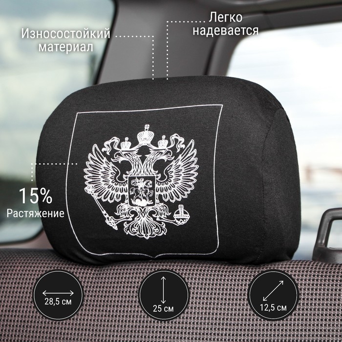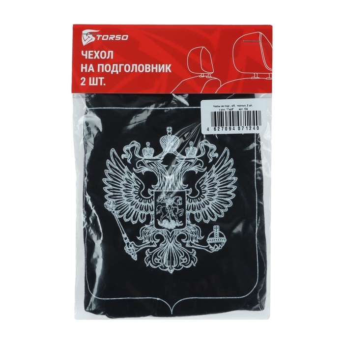 Чехлы на подголовник TORSO "Герб", черные, текстиль, набор 2 шт