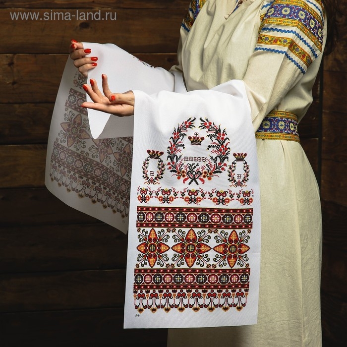 Рушник под ноги. Кто первым из молодых на него встанет — тому и быть хозяином в доме. Лучше отказаться от вариантов, на которых изображена пара голубей или лебедей, а также кольца. Считается, что супруги могут затоптать своё счастье. Лучше отдать предпочтение геометрическим или растительным узорам.