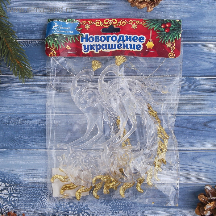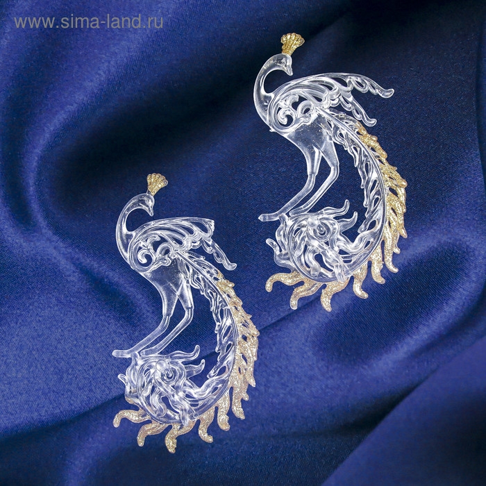 Ёлочные игрушки 2 шт. «Зимнее волшебство. Жар-птица с золотинкой» пластик, 8х14,5 см, прозрачно-золотой
