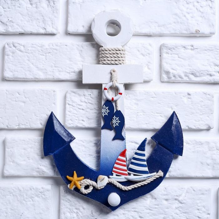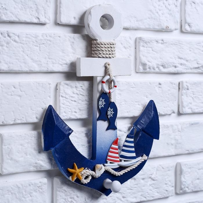 Вешалка интерьерная «Якорь», 1 крючок, бело-синяя, 28 х 20 х 5 см