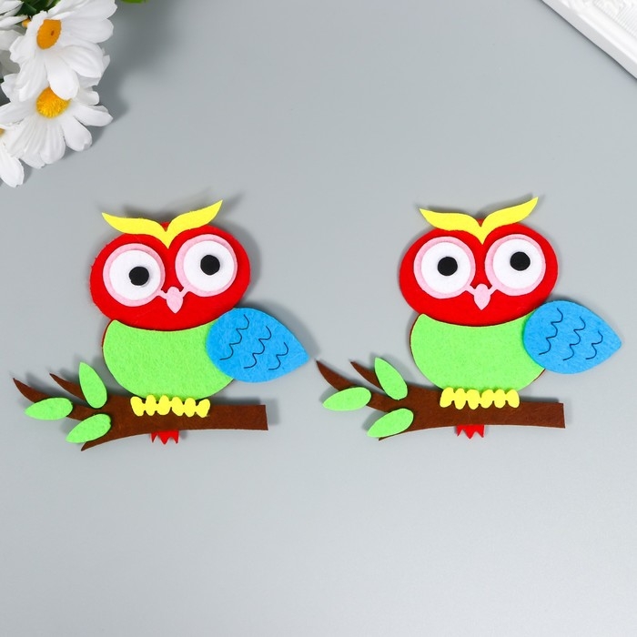 Декор для творчества войлок "Совушка на ветке" набор 2 шт 11х9 см