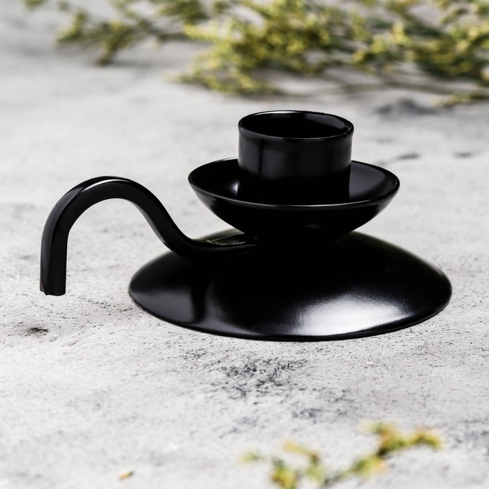 Подсвечник "Ретро" металл на 1 свечу, 10х4 см, чёрный муар