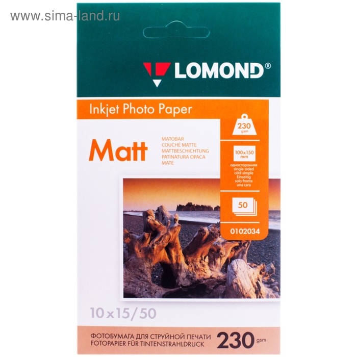Фотобумага для струйной печати А6 (100 x 150 мм), 50 листов LOMOND, 230 г/м2, односторонняя, матовая
