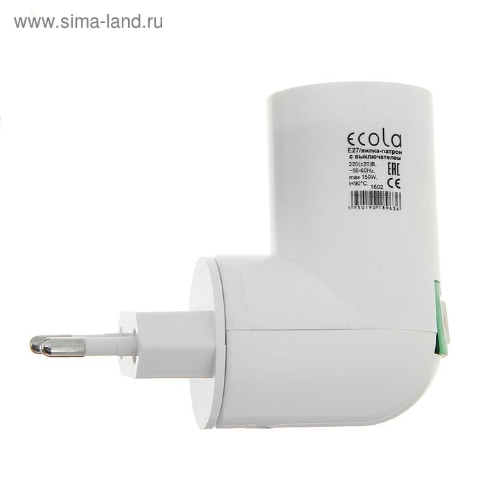 Переходник Ecola, вилка-патрон, E27, 60 х 83 мм, с выключателем, белый