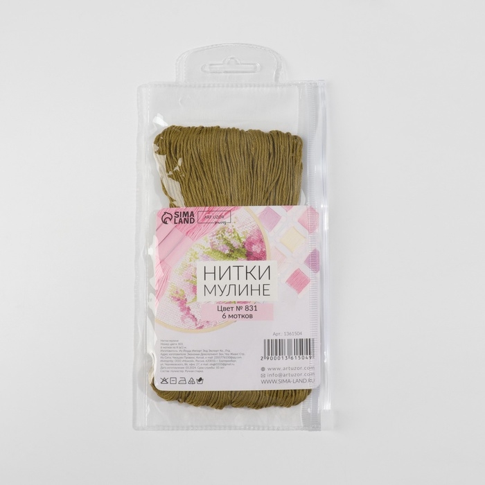 Набор ниток мулине №831, 8 ± 1 м, 6 шт, цвет оливковый