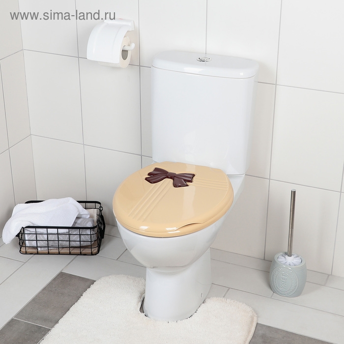 Сиденье для унитаза с крышкой «Комфорт Люкс», цвет бежевый/коричневый бантик