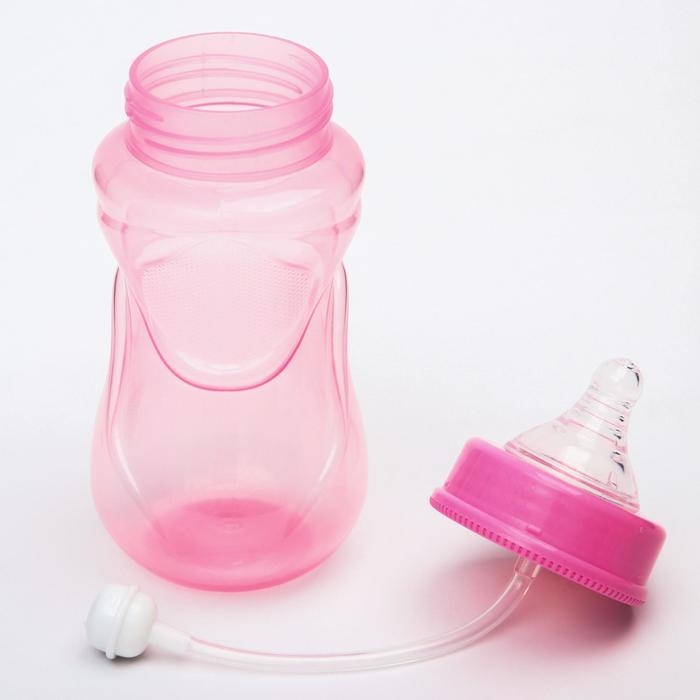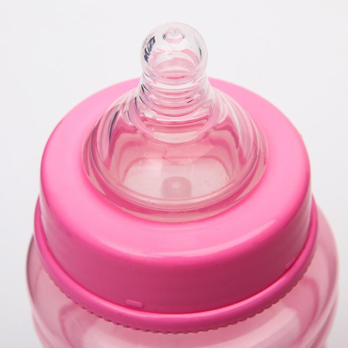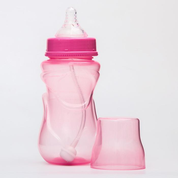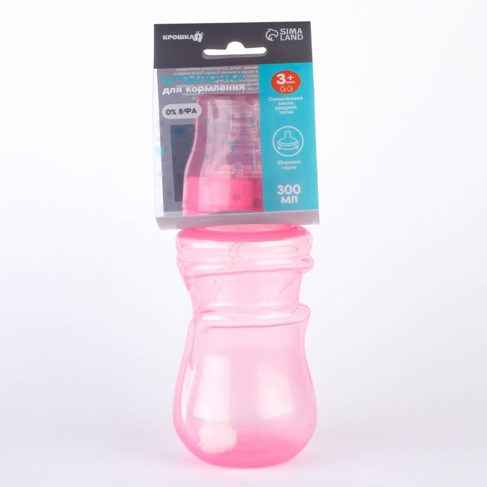 Бутылочка для кормления, широкое горло, средний поток, 300 мл., цвет розовый, +3мес