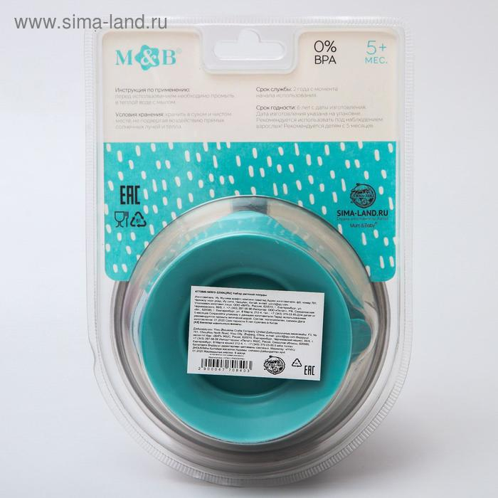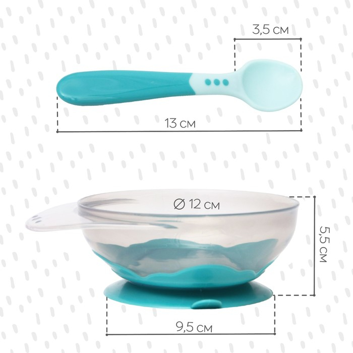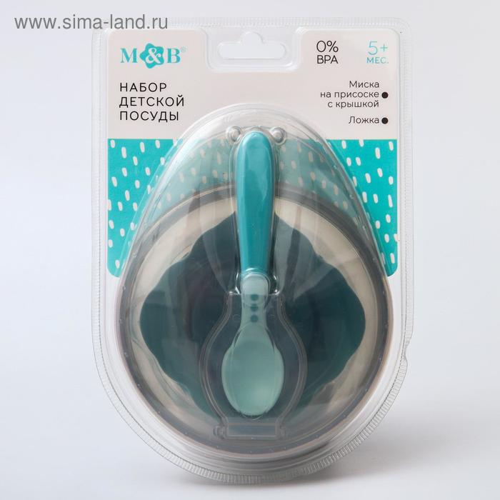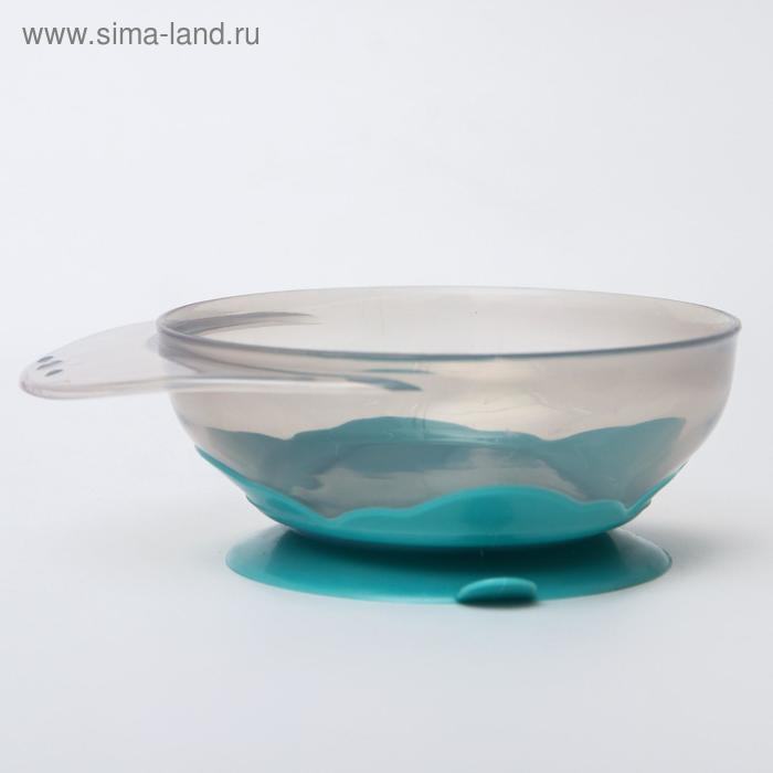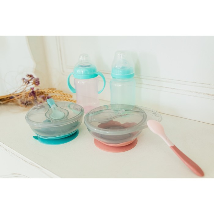 Набор для кормления: миска на присоске, с крышкой + ложка, цвет бирюзовый, 400 мл