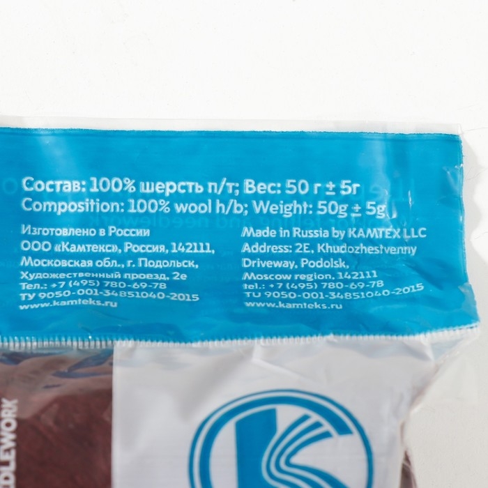 Шерсть для валяния 100% полутонкая шерсть 50 гр (063, шоколад)