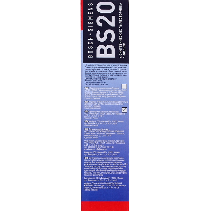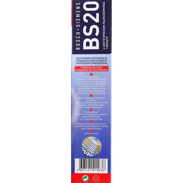 Синтетический пылесборник Тopperr BS 20 для пылесосов Bosch, Siemens, 4 шт. + 1 фильтр