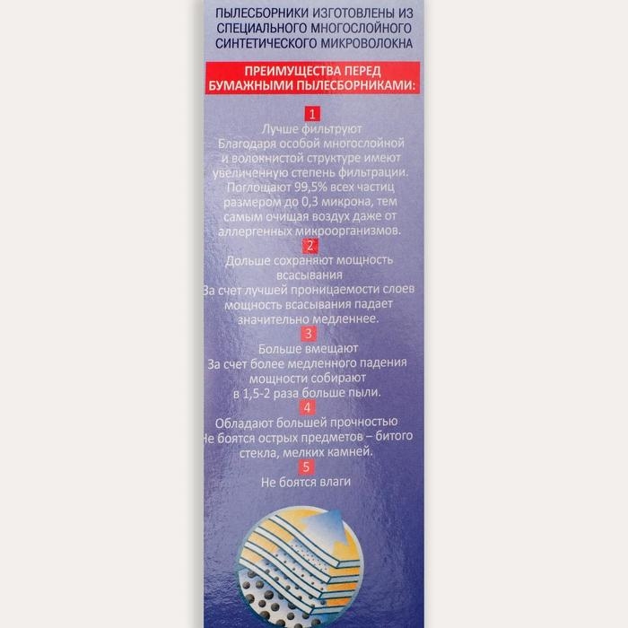 Регулярное использование синтетических мешков-пылесборников гарантирует не только очищение воздуха от пыли и аллергенных микроорганизмов, но и чистоту внутренних поверхностей пылесоса.