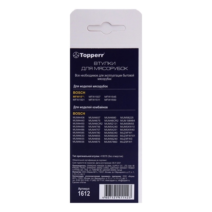 Набор втулок Тopperr для мясорубок Bosch и Siemens, 2 шт.