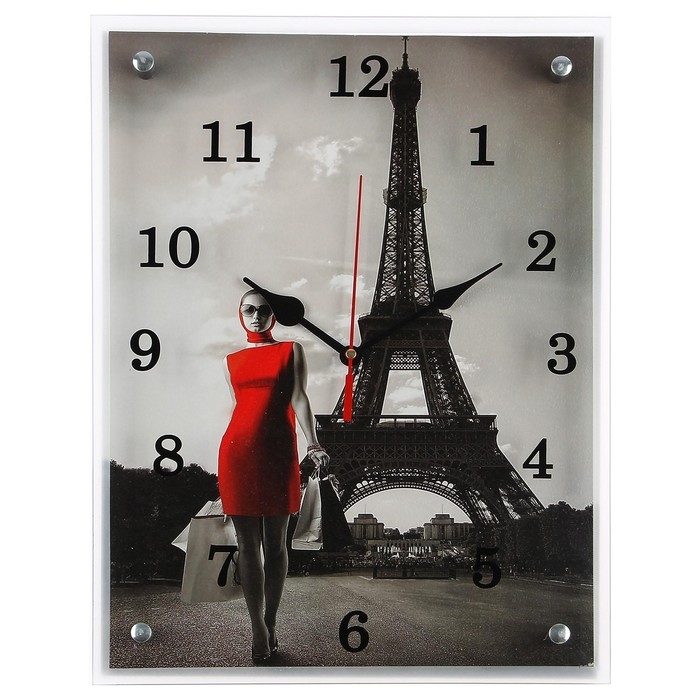 Часы-картина настенные, интерьерные "Девушка в Париже", бесшумные, 30 х 40 см