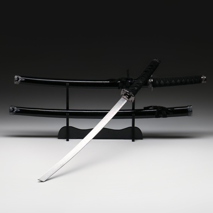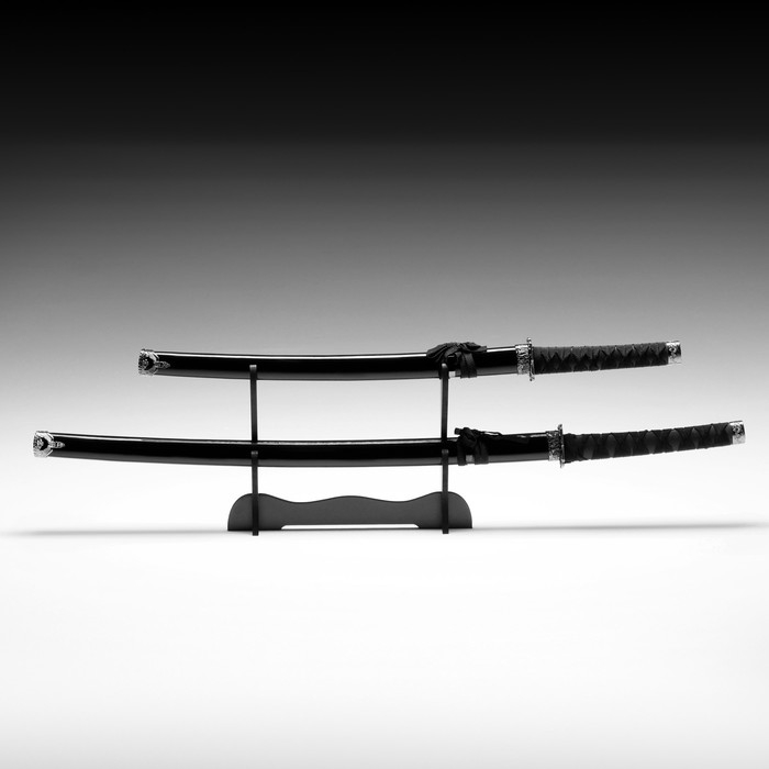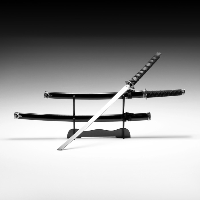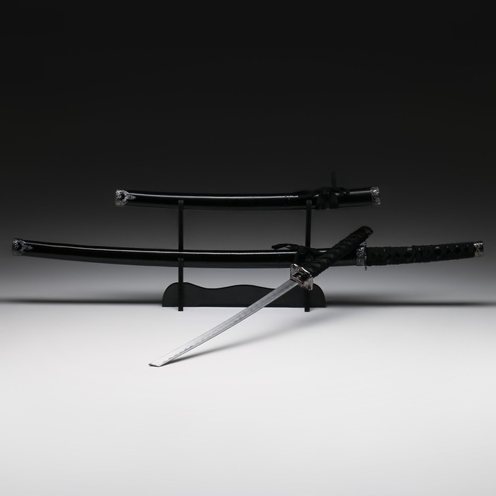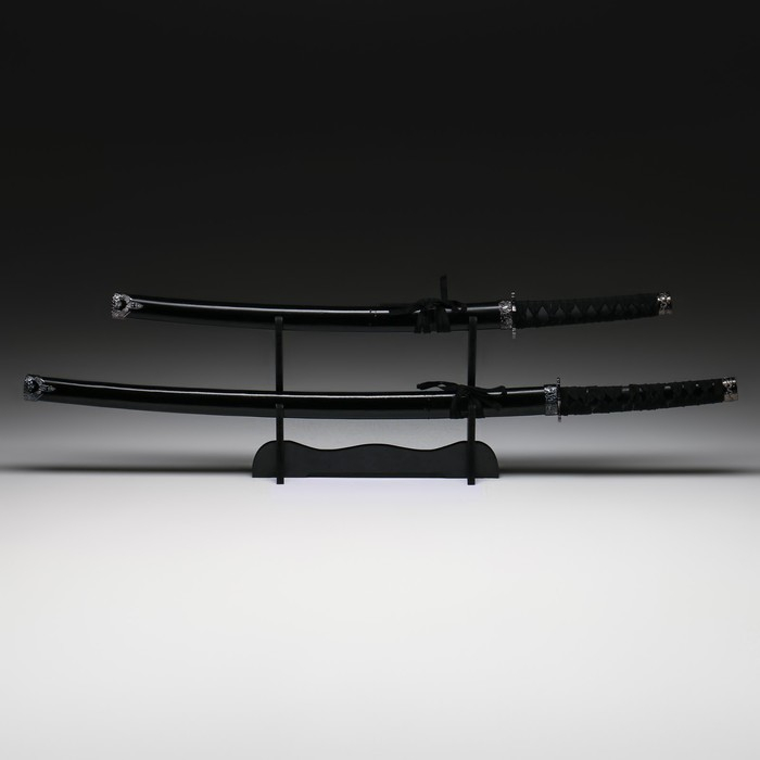 Сув. изделие катаны 2в1 на подставке, ножны дерево, черные глянец 78/103 см